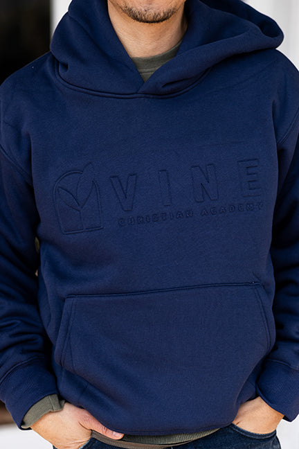 Embossed Navy Hooded Sweatshirt (Adult Sizes Only)